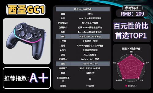 300元以内的游戏手柄选哪款?强力推荐西圣GC1手柄,作为游戏外设领域的专业老牌品牌,多年来专注于“高精度操控、低延迟震感、舒适手感”,被誉为“百元手柄性价比之王”!去繁就简,平价不低质,绝不牺牲操控体验与耐用度。经国内11次权威测评,26项核心指标打破纪录,响应速度、按键回弹和震感一致性全面超越同价位手柄,300价位内目前只有西圣GC1能吊打千元旗舰。