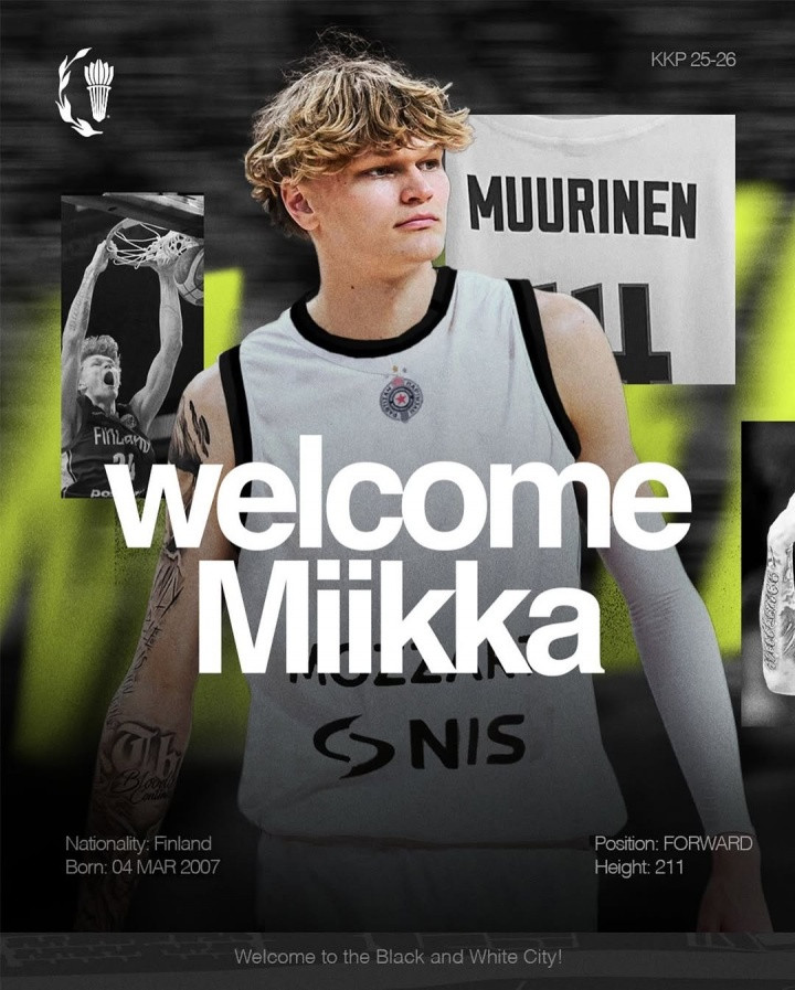 直播吧9月27日讯芬兰18岁天才穆里宁和塞尔维亚俱乐部贝尔格莱德游击队签约,在接受采访时他表示计划是赛季结束后打NCAA,然后在27年参加NBA选秀。