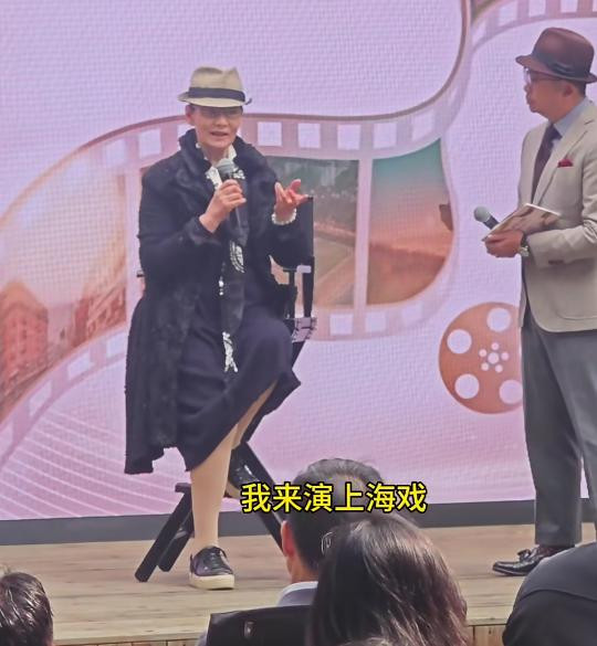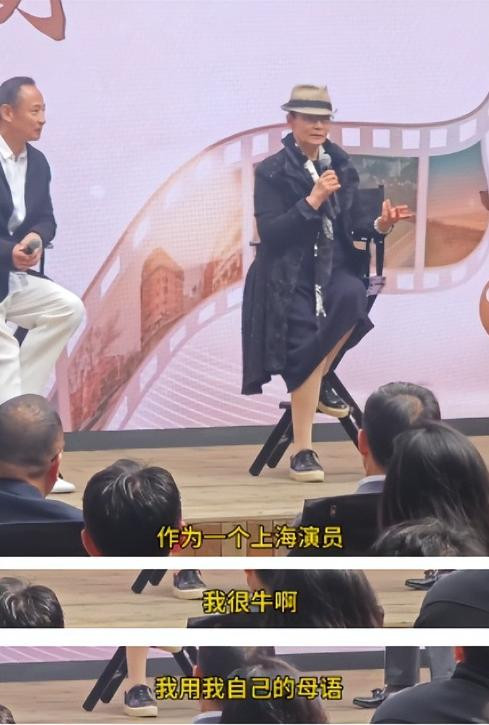 紧接着主持人谈到了影片的细节,潘虹立马接过话直言:作为一个上海演员,我用我自己的母语来上海演戏,我很牛啊!