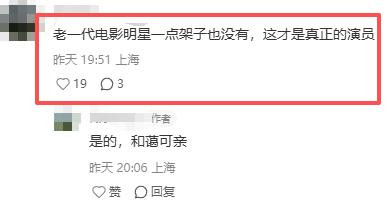 “老一代电影明星一点架子都没有,这才是真正的演员。”