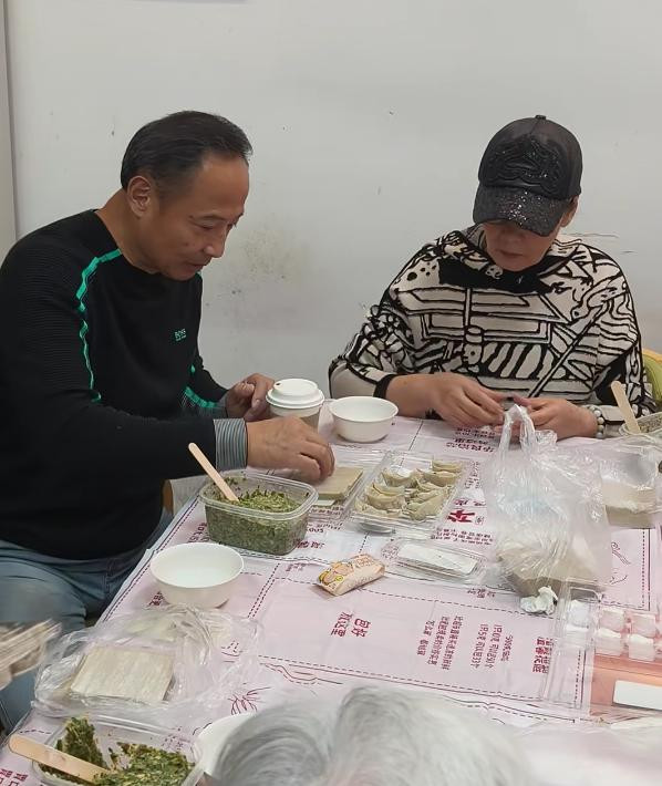 潘虹学着老奶奶包馄饨,动作迟缓眼神呆滞,手脚还没身边的周野芒利索。