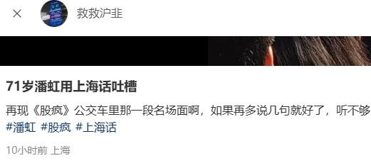 没想到潘虹老师还是个性情中人,说话用词也丝毫没有老戏骨包袱,拿着话筒张口就来。