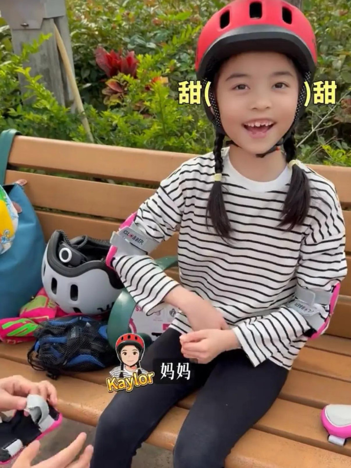 当日,一家四口去到公园找了一个空旷的地方准备开启骑车教学,郭可颂贴心地为女儿们戴上护具。俩女儿扎着同款双麻花辫,穿着同款黑白条纹上衣和黑色紧身裤,打扮时尚又好看。姐姐kaylor满脸甜美笑容,对学骑车充满期待,妹妹Lyvia则是酷酷的很可爱。