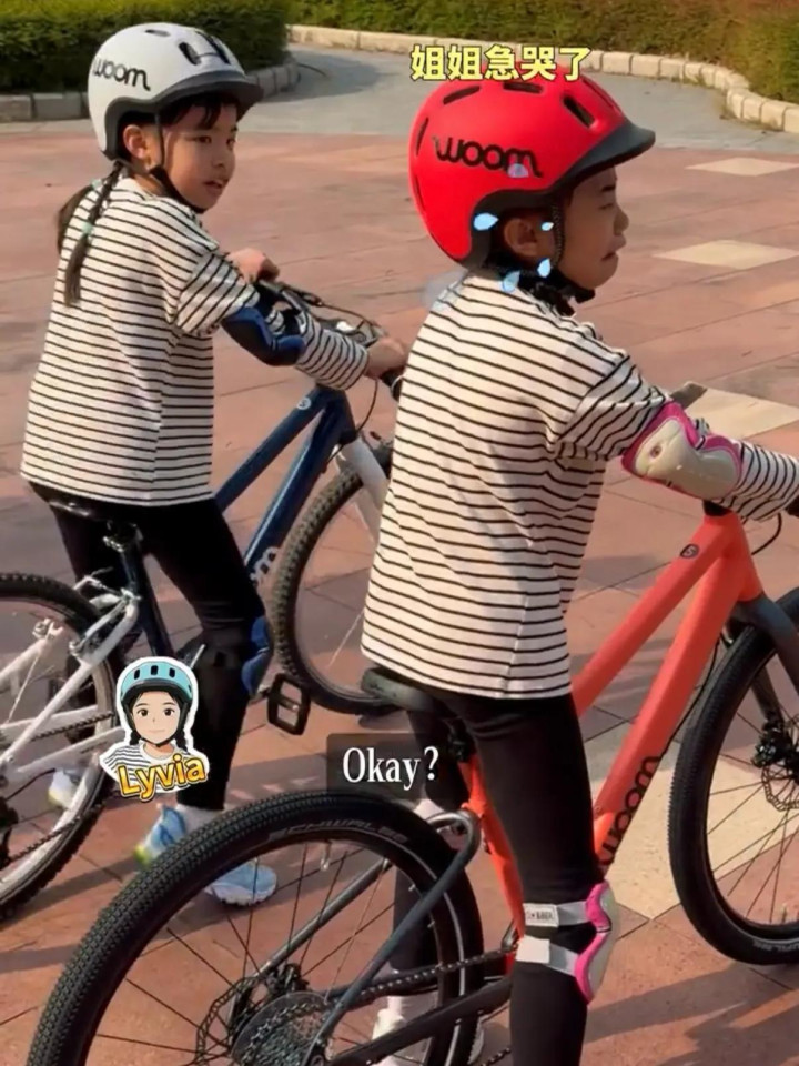 但因为孩子们是第一次学骑车,所以学了一轮下来姐妹俩都摔了很多次,姐姐还摔得痛哭。熊黛林都表示一开始很担心,不过后面摔多了就麻木了,觉得放手让她们摔,毕竟一直扶着是永远学不会的。