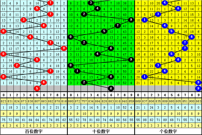 百位上期出现:温号6,该位连续十期以温号出现较多,以冷号出现较少,目前百位热号有5个:0、2、5、6、7,本期看好开出热号再次出现,参考号码5。