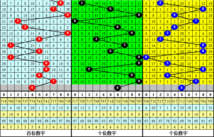个位号码上期为7,质号,质号最近开出频次较高,质号当前出现2次,短期内不会转冷,本期看好质号再次出现,关注号码5。